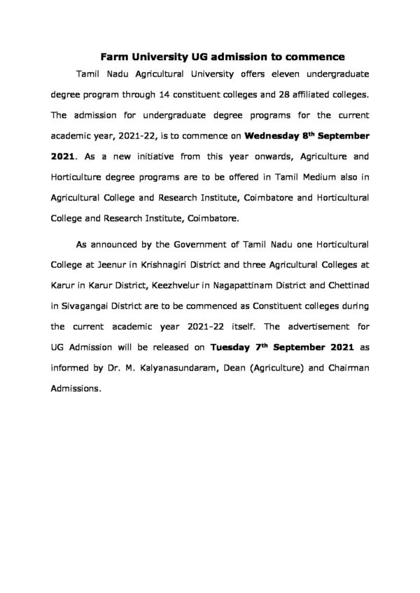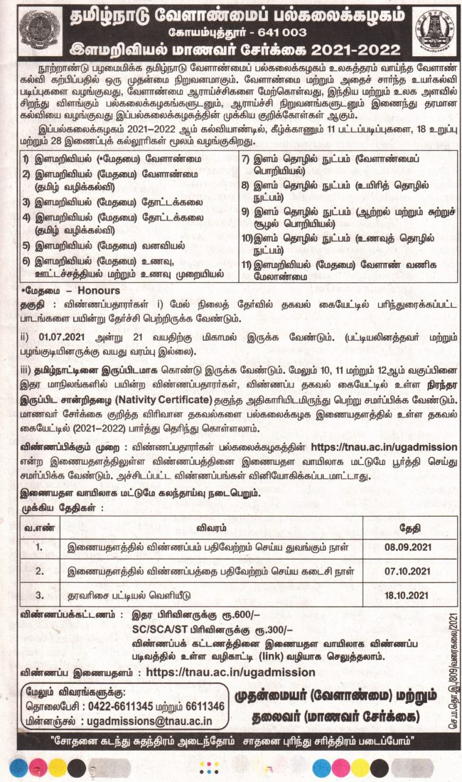 TNAU Application Link • Category: NewsSeptember 11, 2021Leave a comment Share this post Share on FacebookShare on Facebook Share on XShare on X Pin itShare on Pinterest Share on LinkedInShare on LinkedIn Post navigationPreviousPrevious post:12th Foundation DayNextNext post:Grapes Planting – Large Scale DemonstrationRelated postsQuaterly News Letter Oct – Dec 2025December 31, 2025Food Fest- 2025December 6, 2025Freshers’ Orientation & 16th Club Inauguration – 2025November 7, 2025Club Day – 2024December 7, 2024World Forest Day-2024March 21, 2024ONE DAY TRAINING PROGRAMME-2024February 28, 2024